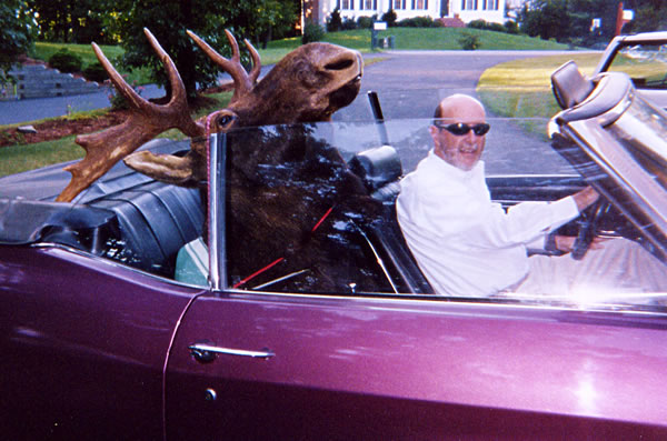 George loves feeling the breeze through his antlers while cruising with the top down with Dr. Jawn. For more New England photos visit Dr. Jawn's brother Bill's Website